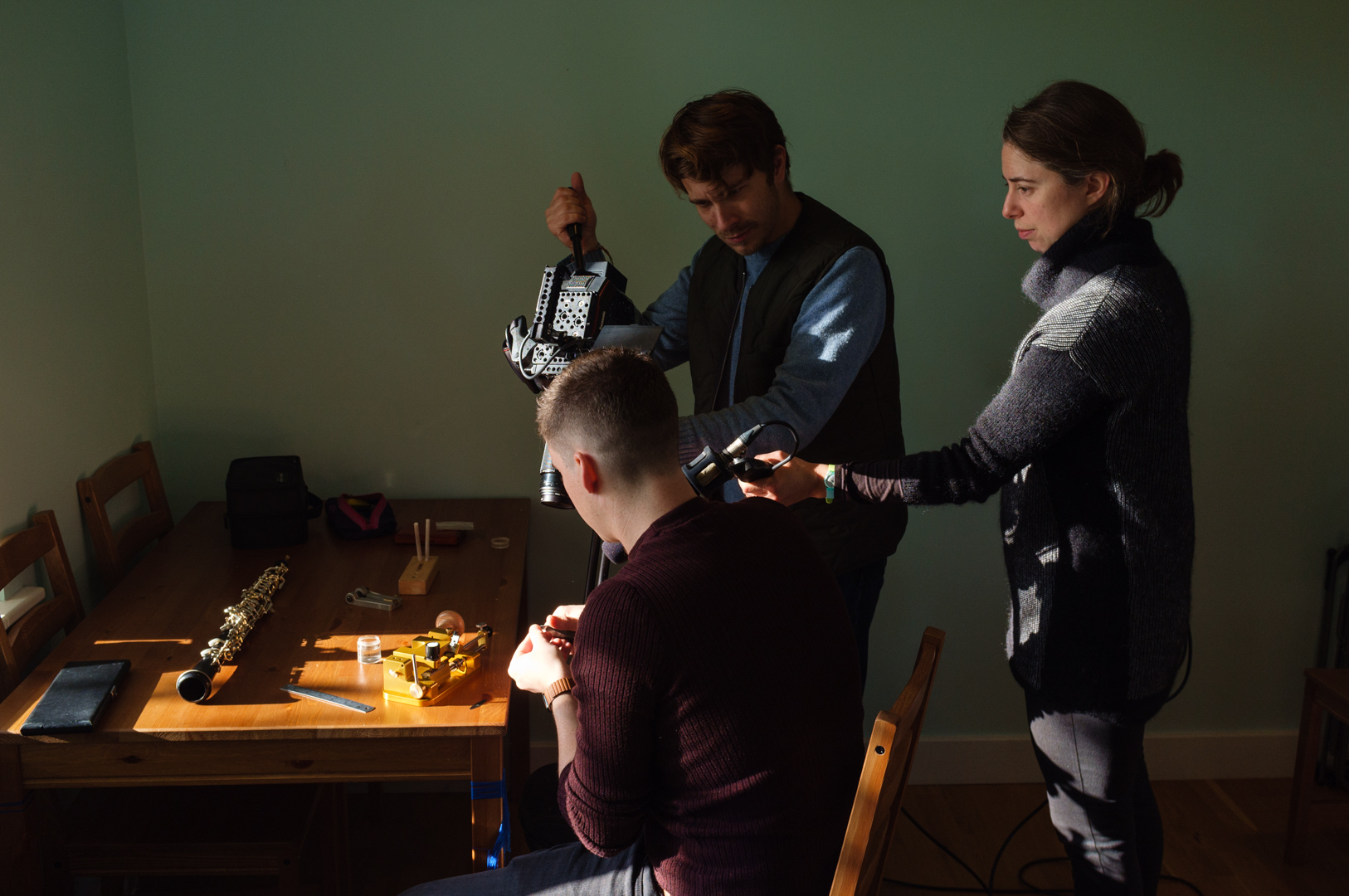 Filming with former Philharmonia Orchestra Principal Oboe Tom Blomfield and filmmaker Kaspar Kamu. (photo credit: Luca Migliore)